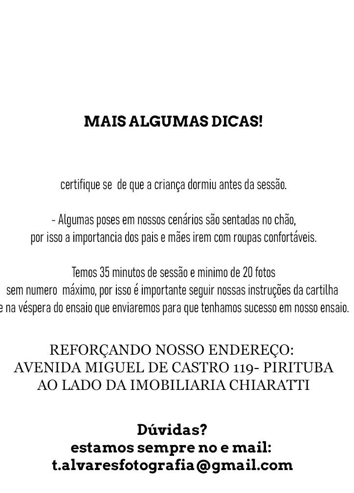 O meio mais efetivo para contato é o e mail : t.alvaresfotografia@gmail.com